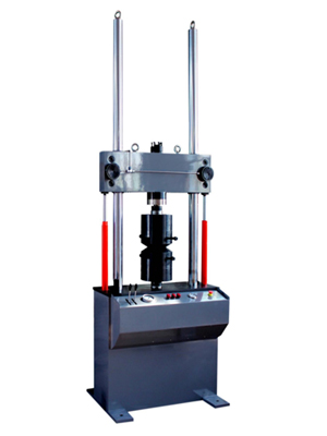 作动器下置式主机结构:作动器下置于工作台下平面,尺寸按照人机原理设计,便于操作。主机下部为焊接式机座,机座前部安装操作控制台,控制台内部安装横梁运动控制液压模块和液压夹头运动控制液压模块,横梁运动控制液压模块实现对横梁的升降、松开动作的控制;液压夹头运动控制液压模块,实现对液压夹头夹紧、松开以及液压夹头系统压力的调整。该试验机的核心部件一伺服作动器置于工作台的下端,作动器外置伺服阀、精密滤油器、进回油路蓄能器,内置位移传感器。试验机横梁为液压锁紧、弹性松开式结构。